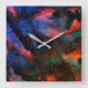 Cobalt blue splash with colourful red-hot texture square wall clock