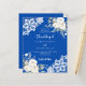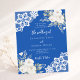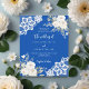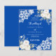 For an elegant and romantic wedding. A cobalt blue coloured background decorated with white florals, roses and white lace. Personalize and add your names and details.