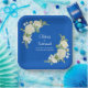 Cobalt Blue & White Roses 9" Square Paper Plate