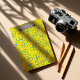 Bold and graphic, this hand-drawn pattern layers cobalt-blue scribble rings across a bright sunshine-yellow ground, sprinkled with tiny dash marks for extra energy. The rough, stamped line texture adds a playful printmaking feel while the overlapping circles create lively movement.