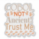 COBOL is NOT Ancient! This bold and witty design uses playful dinosaur footprints to challenge the myth that COBOL is outdated, celebrating its enduring power in modern enterprise systems and legacy tech culture.
