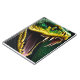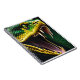 Menacing cobra snake with vibrant green and yellow scales showcasing its terrifyingly large fangs and a venomous glare.artificial intelligence art