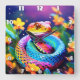 Cobra snake with vibrant turquoise pink and yellow square wall clock