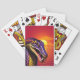 Cobra snake with vvibrant purple and yellow scales playing cards