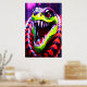 Menacing cobra snake with vibrant lime green lips and pink and purple eye brows with scales showcasing its terrifyingly large fangs and a venomous glare.artificial intelligence