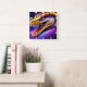 Cobra vibrant red purple white and yellow scales square wall clock