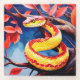 Cobra with vibrant red and yellow scales in tree glass coaster
