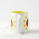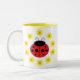 Conception assez petite de coccinelle avec les marguerites jaunes sur une tasse de café.