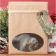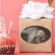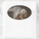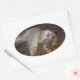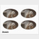Cockapoo dog rleaxing on his tiger striped bed oval sticker