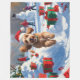 Cockapoo Running in Snow with Christmas Hat Fleece Blanket