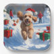 Cockapoo Running in Snow with Christmas Hat Paper Plate