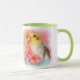 A high quality realistic painting of a cockatiel with pink plumeria flowers. Specially painted for you and your cockatiel dear friends. This mug will be a great collection as well as a beautiful drinkware.
