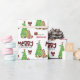 The repeated pattern on this cute Christmas wrapping paper is an image of an adorable buff coloured Cocker Spaniel wearing a red and white Santa hat. The dog sits among brightly wrapped gift packages beside a decorated Christmas tree. A bullfinch bird is landing on the tree behind it. Stylized red and black buffalo plaid text says MERRY CHRISTMAS", and your own signature is in two fields for you to customize.