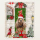 Cocker Spaniel Dog assis à l'extérieur de la maison décorée avec la couronne de Noël, le sapin de Noël est une idée cadeau de Noël parfait pour les amoureux de les chiens.