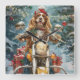 Cocker Spaniel Dog Riding Motorcycle Christmas Square Wall Clock