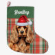 Cocker Spaniel Green and Red Plaid with Dog's Name Large Christmas Stocking