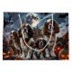 Unleash the spooky spirit with this eerie Halloween design featuring a pack of dogs under a dark, moonlit sky, surrounded by flying bats and glowing pumpkins. Perfect for those who love a touch of frightful fun with their furry friends!