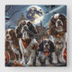 Unleash the spooky spirit with this eerie Halloween design featuring a pack of dogs under a dark, moonlit sky, surrounded by flying bats and glowing pumpkins. Perfect for those who love a touch of frightful fun with their furry friends!