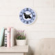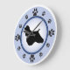 Cocker Spaniel owners and dog lovers will enjoy this fun modern design featuring a cocker spaniel silhouette and paw prints representing the numbers on the clock face, with a background of blue and a darker blue ring.