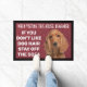 Custom dog doormat with a funny quote. "If you don't like dog hair, stay off the sofa." It has a non-slip rubber that won't crack or buckle, resists fading, mould, and mildew and can be easily cleaned with a hose. Be creative - click on CUSTOMIZE to add/remove/change text, change the picture, resize the picture, change colours, background or anything else the customization tool will allow!