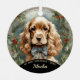 An adorable Cocker Spaniel puppy poses for his first Christmas. Name, year, and photos are easily personalized. Don't have a photo of your loved one's new Cocker Spaniel puppy? No problem! Both sides of this ornament are already prepared with perfect pictures for gifting.