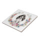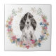 This tile shows an image of a spring flower wreath in colours of soft pink, blue, gold, green and cream. At the centre is a beautiful watercolor portrait of an adorable Cocker Spaniel. Tiny gold confetti gives a subtle sparkle to the background. Perfect for anyone who loves a Cocker!