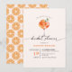 Elegant calligraphy bridal shower fun and bold cocktail themed invitation with orange fruit pattern on the back.