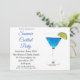 Une jolie invitation bleue que vous pouvez personnaliser pour votre cocktail d'été célébration! Un motif de livre bleu orne le dos de la carte.