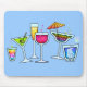 COCKTAIL UP! A bar full of the various cocktail glasses filled with a party full of drinks in a rainbow of colours in a whimsical and colourful style.