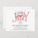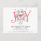 Whimsical unique illustré JOY typographie Nouvel An cocktail soirée invitation par carte postale. Un style unique pour votre célébration. Type de joie exquis, bouges de pin et cocktail.