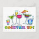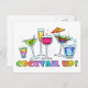 COCKTAIL UP! A bar full of the various cocktail glasses filled with a party full of drinks in a rainbow of colours in a whimsical and colourful style.