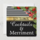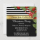 Une invitation de fête de vacances élégante et festive. Gras rayures noires et blanches avec ornements de vacances. Le front a le message, "Fêtons-nous" et "Cocktails & Merriment" l'envers a des infos de fête avec personnalisation ligne par ligne.