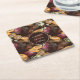 Cocoa Beans and Flowers, Chocolate Pattern Square Paper Coaster