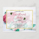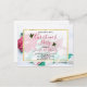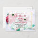 Carte postale d'invitation à Noël avec une photo de Noël chaleureuse et réconfortante. Une tasse de cacao chaude avec des guimauves, un sucre de canne rayé, un foulard rayé vert et blanc et des gants rouges. Le texte du parti se trouve à l'intérieur d'un cadre semi-transparent avec une fausse bordure en feuille d'or. Holly ajoute une touche décorative. Une photo de fête.