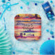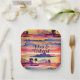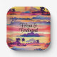 Personalized Coconut Palm Tree Colourful Sunset disposable paper plates for coastal weddings, beach parties, any tropical themed event. Customize the bride and groom names text field or change the text completely to personalize any occasion. Great for weddings, anniversaries, birthdays and summer luau theme parties.