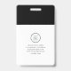 badges d'identité professionnelle avec un arrière - plan noir et blanc, photo de l'employé, nom, profession, code QR, logo d'entreprise et détails de l'entreprise.