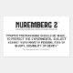 "Des préparatifs appropriés devraient être faits et des installations adéquates devraient être mises en place pour protéger le sujet expérimental contre les possibilités même lointaines de blessures, d'invalidité ou de décès." Article 7 du Code de Nuremberg 1947 - Stickers (Texte noir). Soutiens-tu les Droits de l'Homme Internationaux ? Croyez-vous que les gens devraient connaître leurs droits humains ? La marque Nuremberg 2™ vise à éduquer chaque individu sur l'importance de tous nos droits humains. Nuremberg 2™ est fier d'évoquer le nom donné au premier Code international des droits de l'homme - le Code de Nuremberg de 1947, qui a ouvert la voie à la Déclaration des droits de l'homme des Nations Unies et à d'autres lois visant à protéger l'individu contre la tyrannie de l'État, des entreprises et des institutions. Nuremberg 2™ est dédié à la promotion de la bioéthique internationale et du droit des droits de l'homme, avec des citations directes des clauses et articles les plus importants des lois qui ont été ratifiées par toutes les grandes nations, les rendant globalement inscrits dans la loi, et juridiquement contraignants dans tous les pays. La violation flagrante des lois sur les droits de l'homme par tout État est considérée comme un "crime contre l'humanité". Ceux qui s'opposent, tentent de supprimer, ou ne soutiennent pas la prise de conscience par le public des lois sur les droits de l'homme ne sont pas meilleurs que ceux qui violent de manière flagrante ces lois.