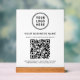 Panneau acrylique blanc moderne pour votre entreprise avec votre code QR pour les clients à analyser pour effectuer un paiement, voir une liste de vos produits, services et prix, rendez-vous de livres, registre, etc. Téléchargez votre logo et votre code QR et ajoutez votre nom d'entreprise, votre numéro de téléphone, votre adresse municipale ou toute autre information en simple typographie.