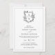 Faire-part de mariage en monogramme de crête florale, formel et élégant, avec code QR et informations plus détaillées sur le dos.