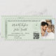 Carte d'embarquement de mariage de destination Invitation pour votre mariage, tendance couleur vert sauge moderne. Ajoutez votre code QR et votre photo