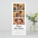 Cette carte "Save the date" de mariage bohème moderne et minimaliste présente des images et une mise en page de style Photomaton rétro. Elle joue avec la simplicité d'une typographie en noir et blanc, en ajoutant une touche unique. Un espace est prévu pour un code QR. C'est le choix idéal pour les couples qui apprécient l'élégance moderne et épurée dans un design ludique et amusant. Pour tout besoin de conception spécifique, n'hésitez pas à contacter le designer directement par e-mail à l'adresse choosehappystudio@yahoo.com