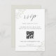 Carte de réponse au mariage avec site web et code QR avec un design de feuillage de sauge élégant moderne.