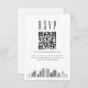 Une carte de code QR de réponse pour un mariage minimaliste avec une belle skyline stylisée représentant la ville de Houston. Remplacez le code QR par un code contenant un lien vers votre site web pour aider vos invités à répondre plus facilement à votre événement de mariage.