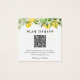Carte encart de réponse de mariage de printemps et d'été avec un ensemble de fruits d'agrumes citron et citron vert, de feuillage botanique et un code QR qui dirige vos invités de mariage vers votre site web de mariage où ils pourront répondre en ligne. Le verso de cette carte carrée comporte une photo que vous pouvez supprimer ou remplacer par la vôtre.