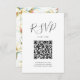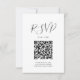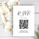 Carte d'enceinte rsvp de mariage simple et floral noir et blanc QR code dans la calligraphie moderne. Cette carte de mariage de destination revient à mes fleurs magnolia blanches d'aquarelle d'origine et s'aligne magnifiquement avec la suite papeterie mariage. Conçu par Victoria Grigaliunas de Do Tell A Belle. Visitez le site www.zazzle.com/dotellabelle pour voir d'autres modèles de mariages budgétaires.