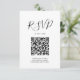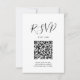 Carte d'enceinte rsvp de mariage de code QR simple et élégante dans la calligraphie moderne. Cette carte revient à une fleur d'hibiscus rose fuchsia tropicale et à un motif de feuilles de palmier. Conçu par Victoria Grigaliunas de Do Tell A Belle. Pour en savoir plus sur ce thème mariage de fleurs d'hibiscus roses, visitez https://www.zazzle.com/collections/pink_hibiscus_flower-119064582807479077