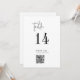 Ce numéro de table QR moderne chic noir et blanc est parfait pour un mariage simple. Le design boho minimaliste présente une typographie bohème rustique unique et élégante dans un noir et blanc épuré minimal. La carte s'imprime à l'avant et à l'arrière (double face). Utilisez le code à barres pour accéder à votre menu, à un site Web ou à un média social où vos invités peuvent partager des photos. Ajoutez chaque numéro de table dont vous avez besoin à votre panier individuellement.