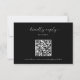 Carte de RSVP de mariage noir moderne, simple et minimaliste avec code QR.