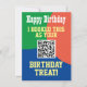 Célébrez un anniversaire avec une carte personnalisée montrant votre choix de code QR qui amène le destinataire sur une page Web de votre choix. Ajoutez aussi votre propre message personnel à l'intérieur.