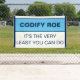 Codify Roe It's the Very Least You Can Do.Codifying Roe should be the floor of women's healthcare rights, not the ceiling. And now, even that doesn't exist. Tell Congress it's time that they do the very least they can do for women's health, safety, and equality, because women are people, and abortion, whatever the reason, is healthcare. Design description: The design space is a white background with a dark blue border. In the top half of the design space, the words, "Codify Roe" in a dark blue sans serif font. Underneath that, a wide light blue stripe with matching dark blue top and bottom borders. Below the stripe, in the bottom half of the design, the words, "It's the very least you can do" across two lines.